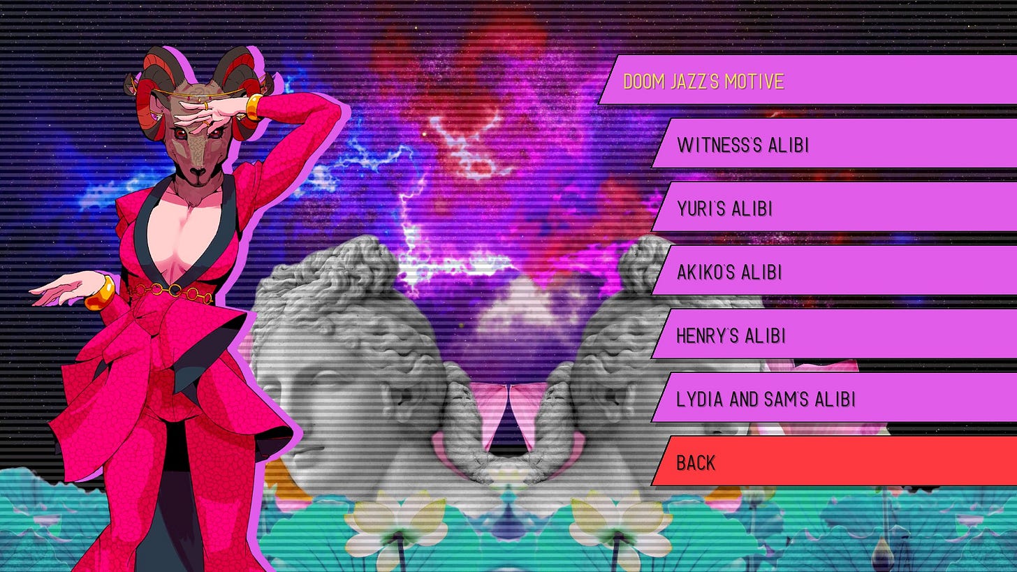 Don’t worry if you don’t understand what this opening is on about; confusion is the normal human reaction. But it’s also the point: More than remembering its proper nouns, what Paradise Killer wants is for you to know up front that it’s not interested in restraint. This is a wildly self-indulgent game that is full throatedly going for it the entire time, totally uninterested in easing you in to its bizarre premise. If anything sticks with you from this opening, it should be key terms like “Henry Division” or “Demonic Corruption Events,” not because they are plot-important (though they are) but because they are telling you that this is a story where people are named things like Henry Division and things like “Demonic Corruption Events” occur. And the normal human reaction to that is to say “hell yeah.”